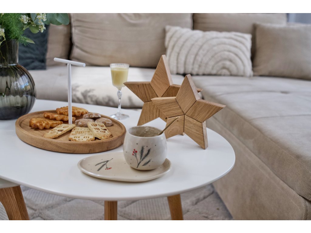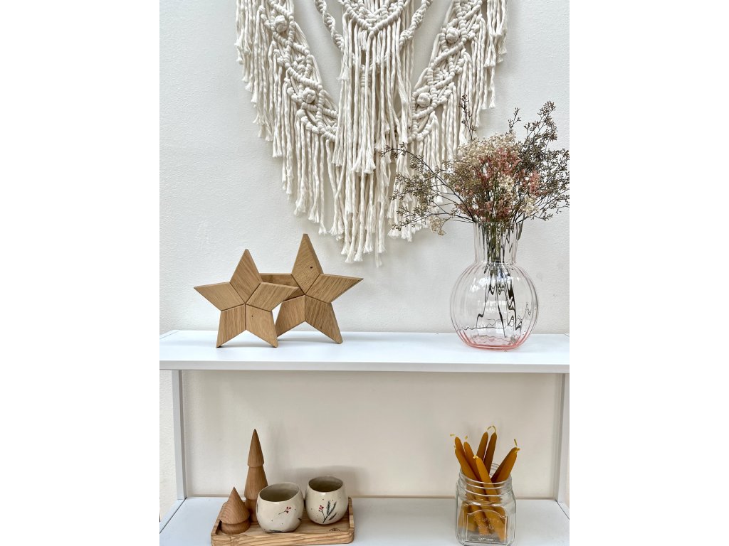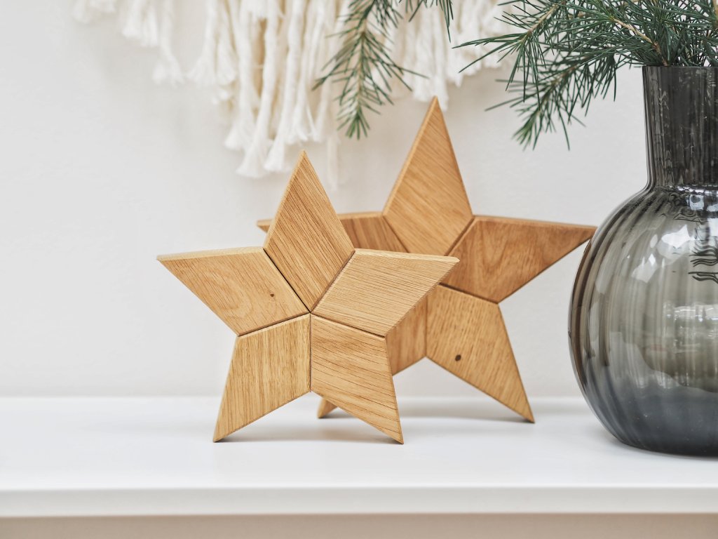 Jejich skládaný motiv je decentní a zároveň originální a neokoukaný. Hvězda je krásným zimním doplňkem a díky masivnímu dřevěnému zpracování vnese do domova útulnou a příjemnou atmosféru. Jsou vyrobeny z dubového dřeva a pro zvýraznění barvy olejovány. Díky tomu mají nádhernou výraznou barvu.