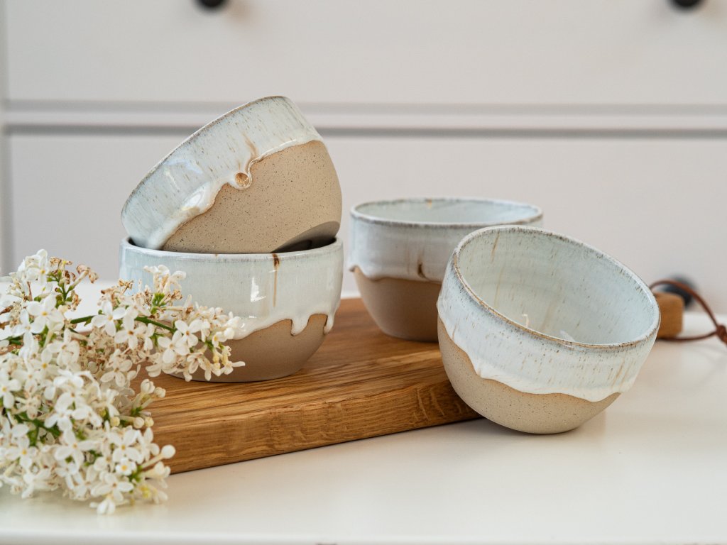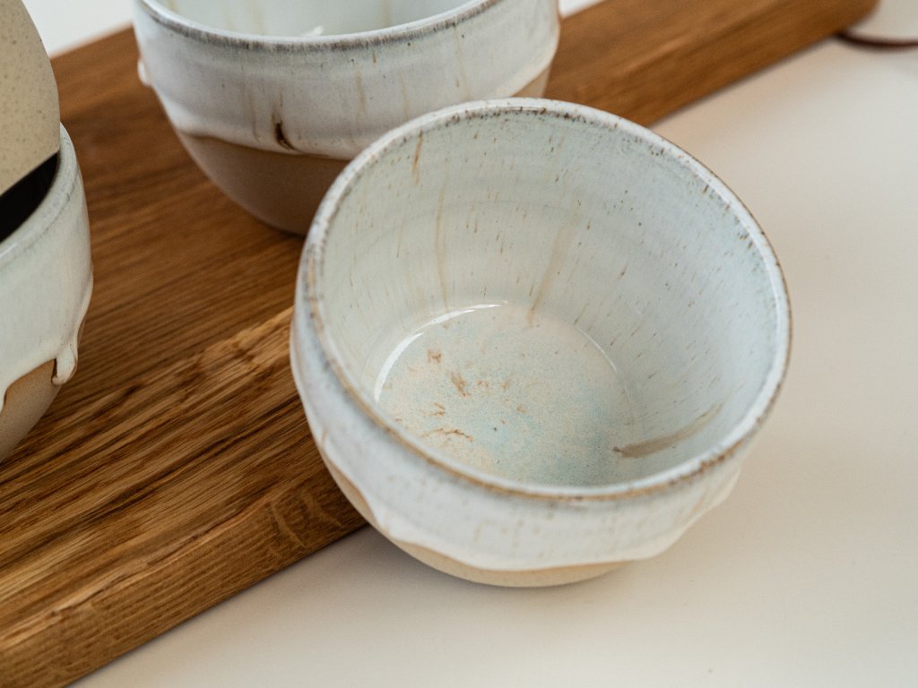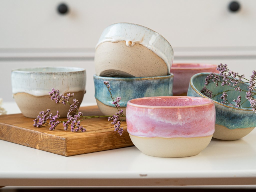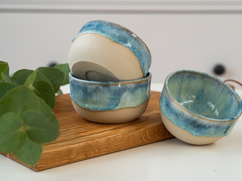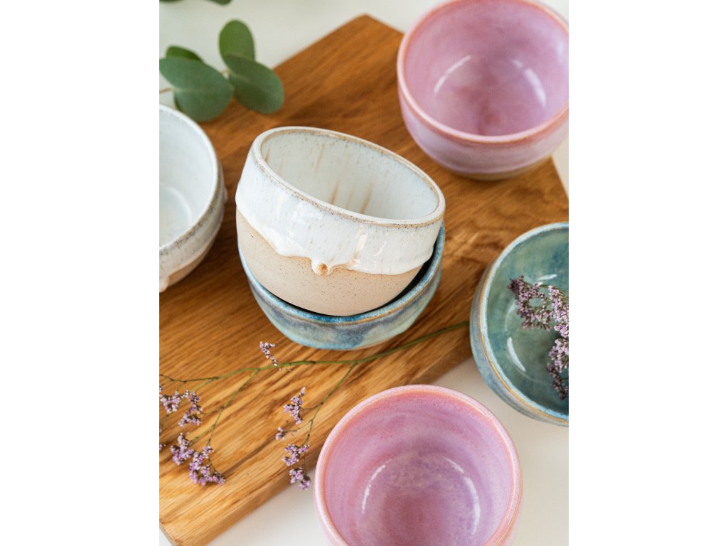 Ručně vyrobený keramický kalíšek kalíšek ve třech barvách