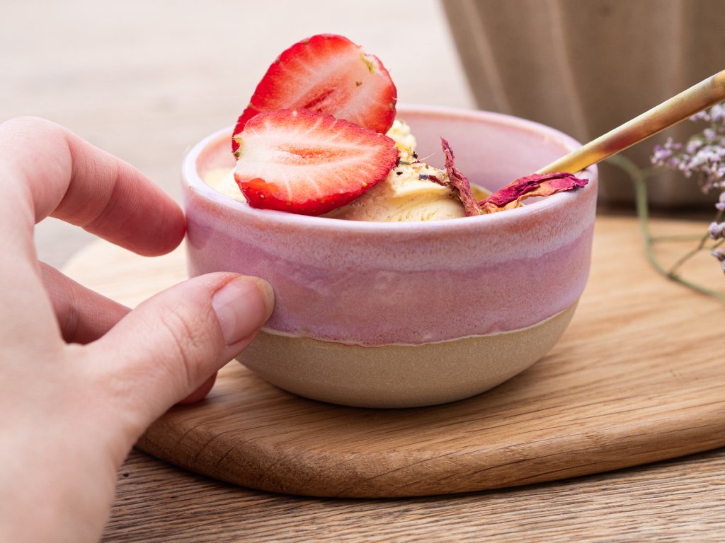 Ručně vyrobený kalíšek/mistička je díky svému tvaru skvělý nejen na kávu, ale taky jako mistička na zmrzlinu nebo oříšky. Výrazné stékané glazury, které vytváří stékající kapky spolu krásně ladí a jsou svěžím doplňkem každé kuchyňě.
