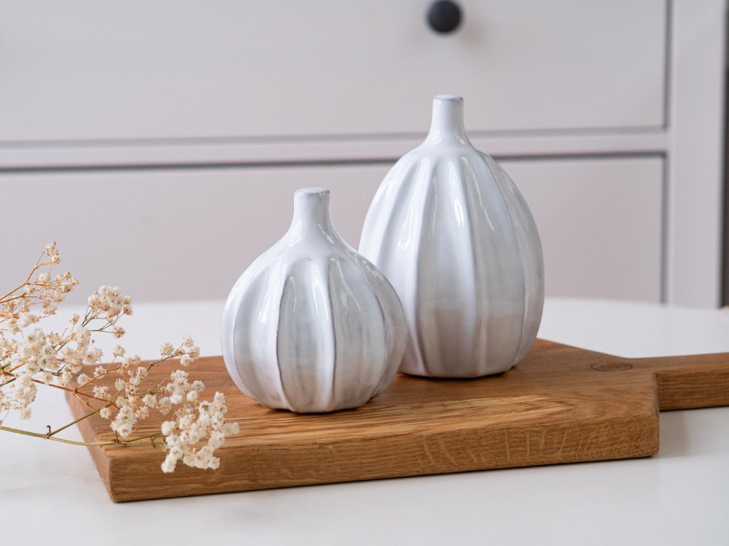 Bílou vázu Ema – minimalistický kousek s jemnou glazurou, ideální na čerstvé i sušené květiny.