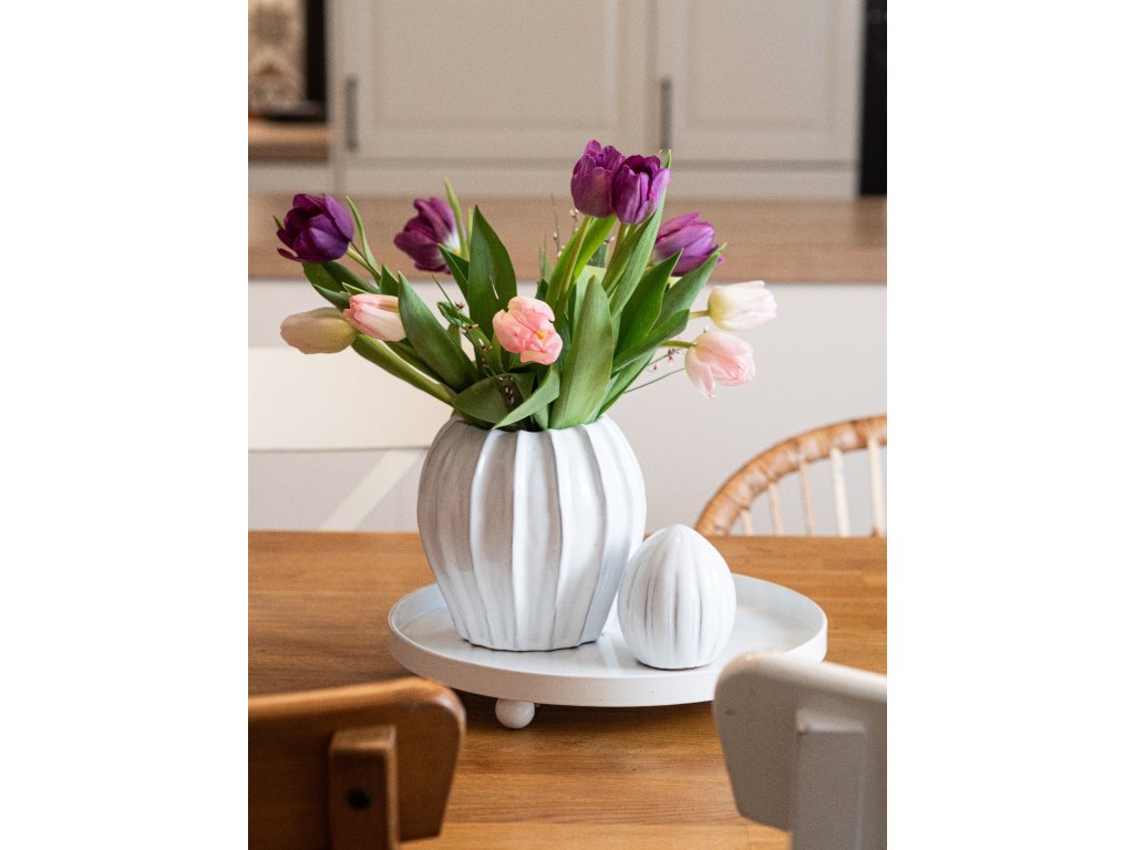Ručně vyrobené keramické vajíčko s jemnými svislými rýhami doplňuje kolekci bílých a přírodních váz a mís. Každý kus je ručně vyrobený originál ve Zlíně.