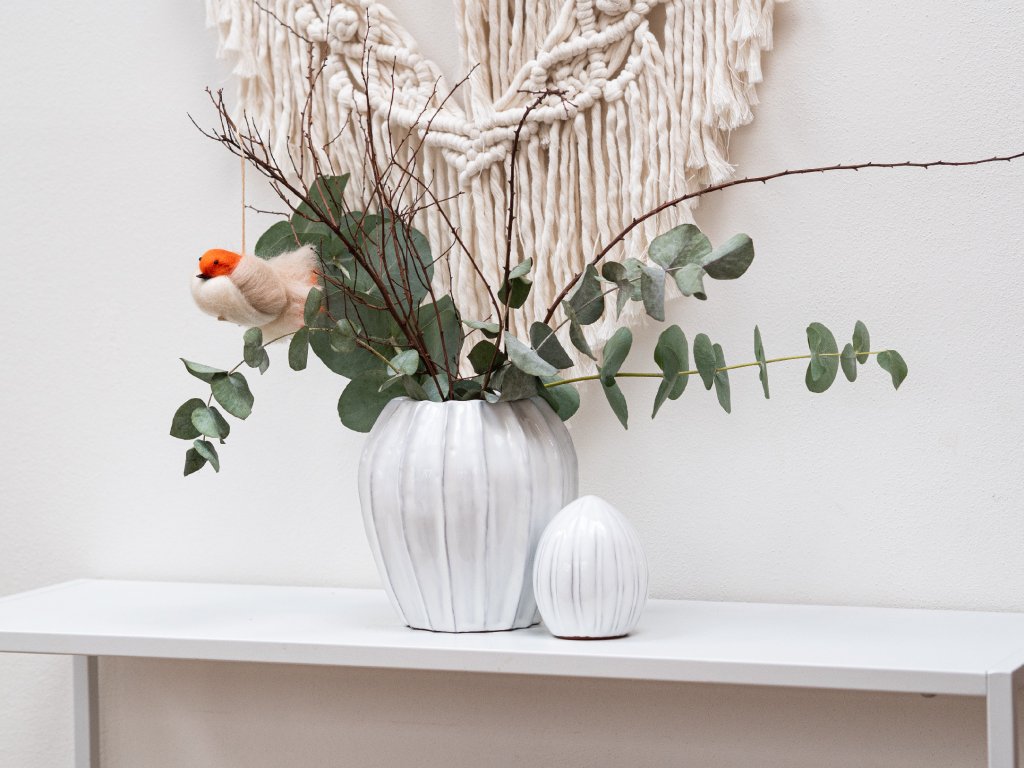 Výhodná sada ručně vyrobené vázy v bílé barvě a keramického vajíčka je skvělou kombinací nejen pro svátky jara. V této sadě navíc za výhodnou cenu