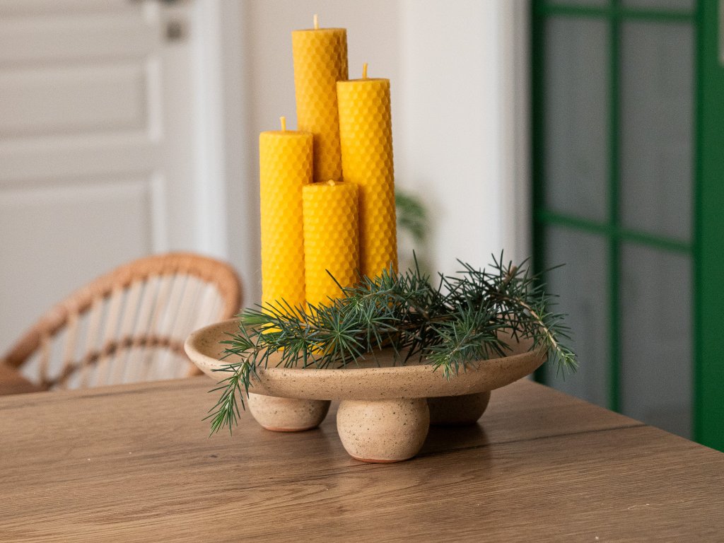 Svíčky krásně vyniknou i na našich keramických podnosech – můžete je využít jako svícen, adventní aranžmá nebo samostatnou dekoraci. Podnos dodá svíčkám stabilitu, chrání povrch stolu a zároveň působí elegantně a čistě.